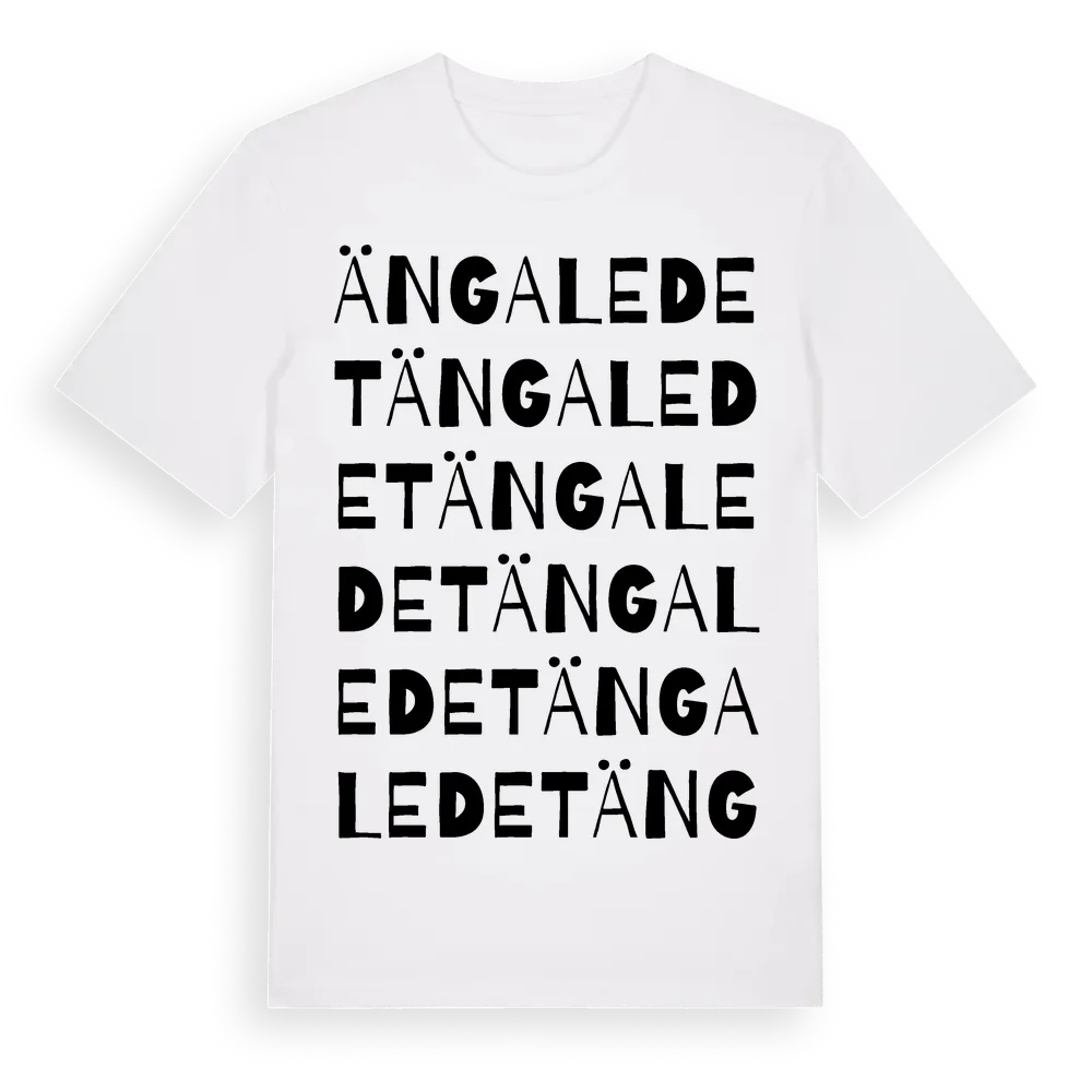 Ängaledet ordlek t-shirt är inspirerad av Ängaledet i Västra Götalands län, Sverige. Tröjan är designad för dig som har en speciell koppling till platsen – oavsett om du bor här, har rötterna här eller bara älskar Ängaledet.