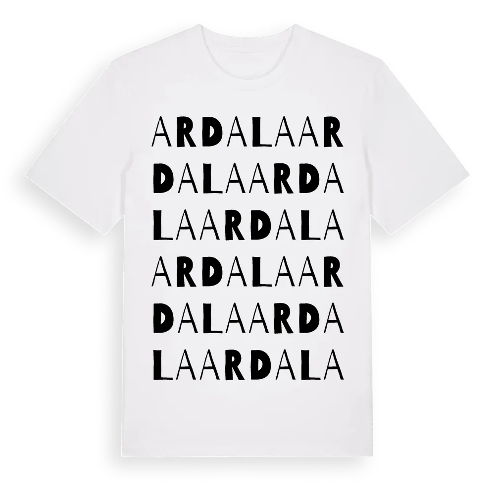 Ardala ordlek t-shirt är inspirerad av byn Ardala i Västra Götalands län, Sverige. Tröjan är designad för dig som har en speciell koppling till platsen – oavsett om du bor här, har rötterna här eller bara älskar Ardala.