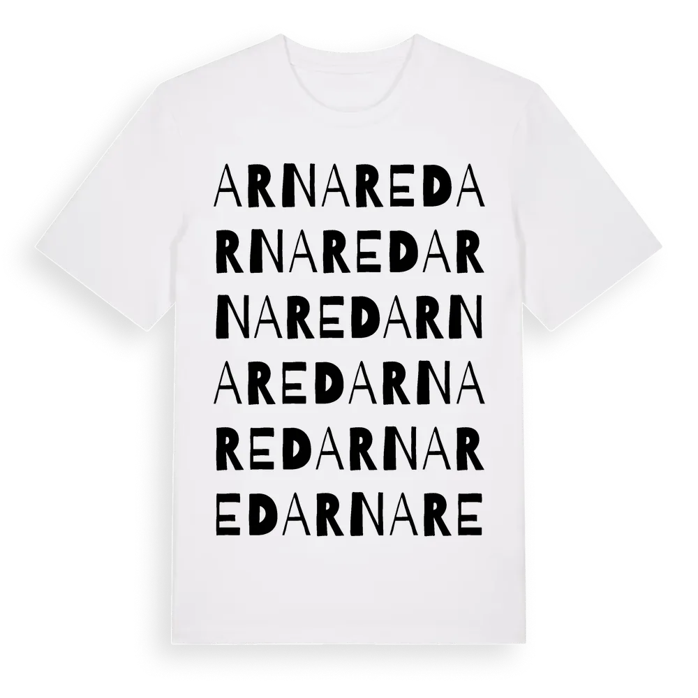 Arnared ordlek t-shirt är inspirerad av Arnared i Västra Götalands län, Sverige. Tröjan är designad för dig som har en speciell koppling till platsen – oavsett om du bor här, har rötterna här eller bara älskar Arnared.