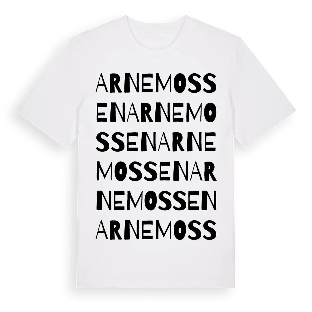 Arnemossen ordlek t-shirt är inspirerad av byn Arnemossen i Västra Götalands län, Sverige. Tröjan är designad för dig som har en speciell koppling till platsen – oavsett om du bor här, har rötterna här eller bara älskar Arnemossen.