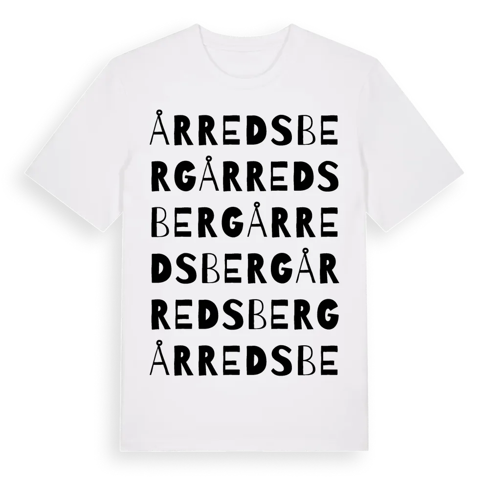 Årredsberg ordlek t-shirt är inspirerad av Årredsberg i Västra Götalands län, Sverige. Tröjan är designad för dig som har en speciell koppling till platsen – oavsett om du bor här, har rötterna här eller bara älskar Årredsberg.