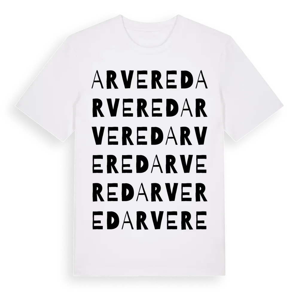 Arvered ordlek t-shirt är inspirerad av Arvered i Västra Götalands län, Sverige. Tröjan är designad för dig som har en speciell koppling till platsen – oavsett om du bor här, har rötterna här eller bara älskar Arvered.
