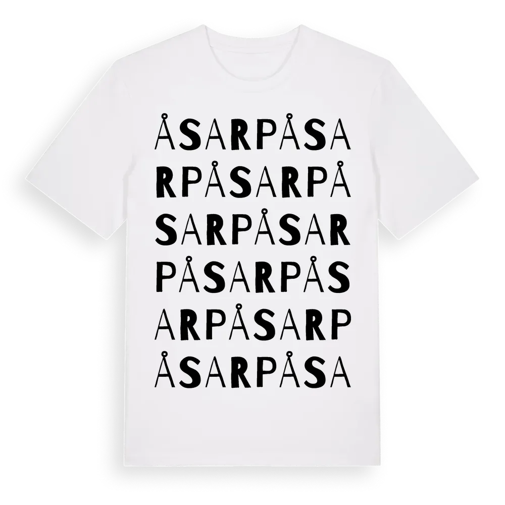 Åsarp ordlek t-shirt är inspirerad av byn Åsarp i Västra Götalands län, Sverige. Tröjan är designad för dig som har en speciell koppling till platsen – oavsett om du bor här, har rötterna här eller bara älskar Åsarp.