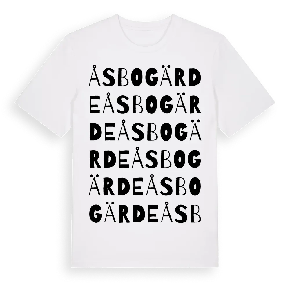 Åsbogärde ordlek t-shirt är inspirerad av byn Åsbogärde i Västra Götalands län, Sverige. Tröjan är designad för dig som har en speciell koppling till platsen – oavsett om du bor här, har rötterna här eller bara älskar Åsbogärde.
