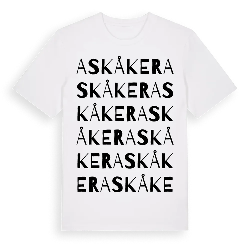 Askåker ordlek t-shirt är inspirerad av byn Askåker i Västra Götalands län, Sverige. Tröjan är designad för dig som har en speciell koppling till platsen – oavsett om du bor här, har rötterna här eller bara älskar Askåker.