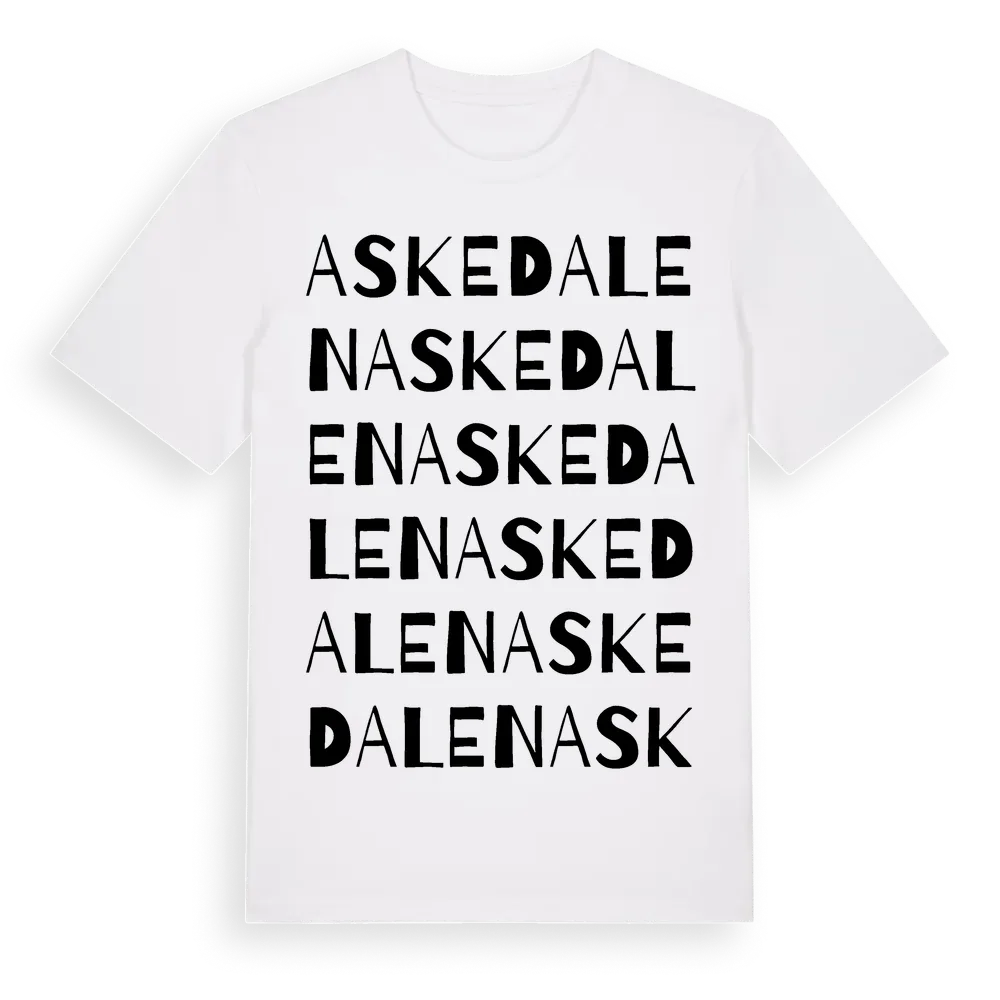 Askedalen ordlek t-shirt är inspirerad av Askedalen i Västra Götalands län, Sverige. Tröjan är designad för dig som har en speciell koppling till platsen – oavsett om du bor här, har rötterna här eller bara älskar Askedalen.