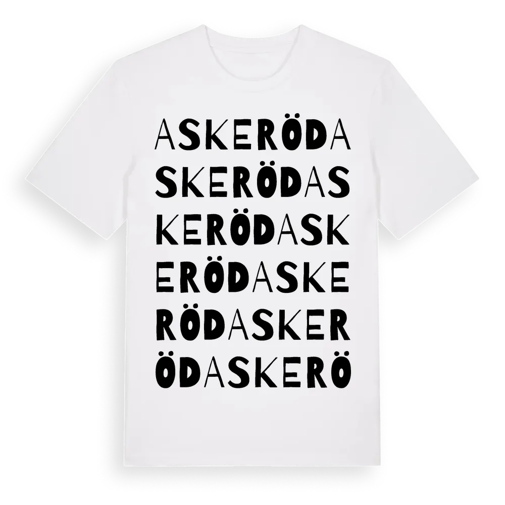 Askeröd ordlek t-shirt är inspirerad av Askeröd i Västra Götalands län, Sverige. Tröjan är designad för dig som har en speciell koppling till platsen – oavsett om du bor här, har rötterna här eller bara älskar Askeröd.