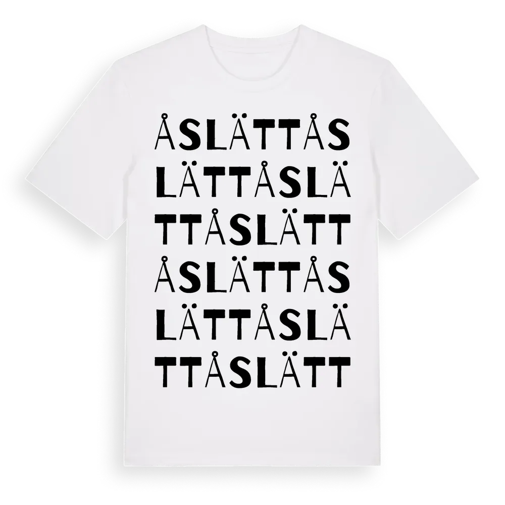 Åslätt ordlek t-shirt är inspirerad av Åslätt i Västra Götalands län, Sverige. Tröjan är designad för dig som har en speciell koppling till platsen – oavsett om du bor här, har rötterna här eller bara älskar Åslätt.