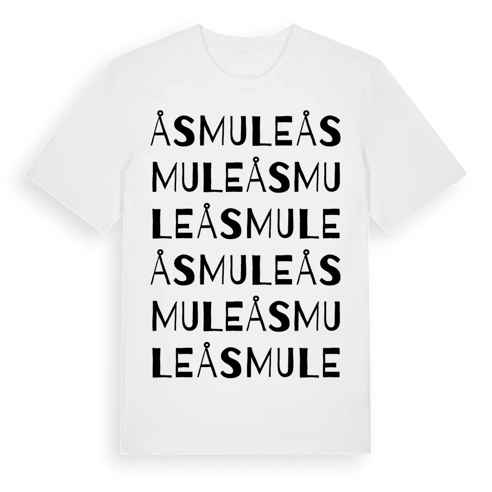 Åsmule ordlek t-shirt är inspirerad av byn Åsmule i Västra Götalands län, Sverige. Tröjan är designad för dig som har en speciell koppling till platsen – oavsett om du bor här, har rötterna här eller bara älskar Åsmule.