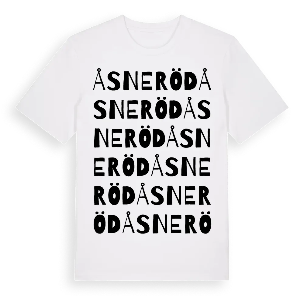 Åsneröd ordlek t-shirt är inspirerad av Åsneröd i Västra Götalands län, Sverige. Tröjan är designad för dig som har en speciell koppling till platsen – oavsett om du bor här, har rötterna här eller bara älskar Åsneröd.
