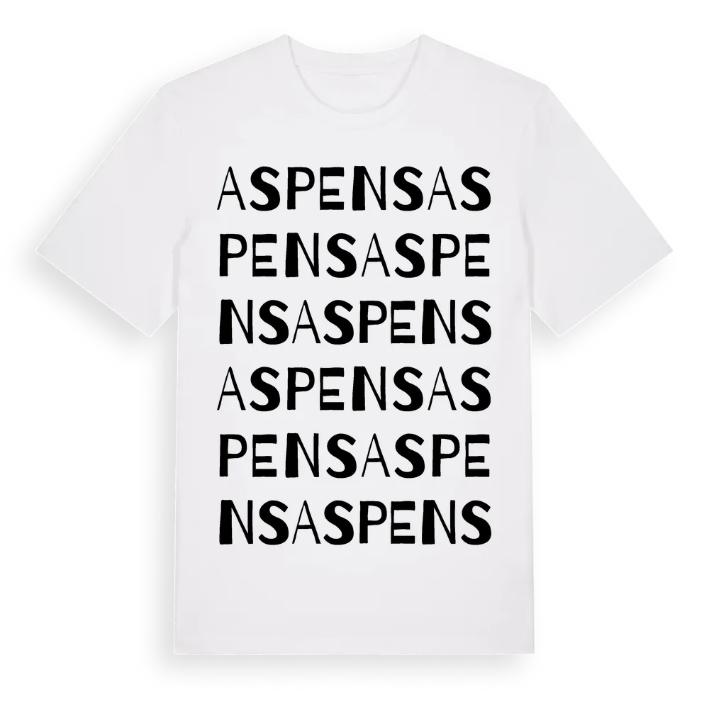 Aspens ordlek t-shirt är inspirerad av Aspens i Västra Götalands län, Sverige. Tröjan är designad för dig som har en speciell koppling till platsen – oavsett om du bor här, har rötterna här eller bara älskar Aspens.