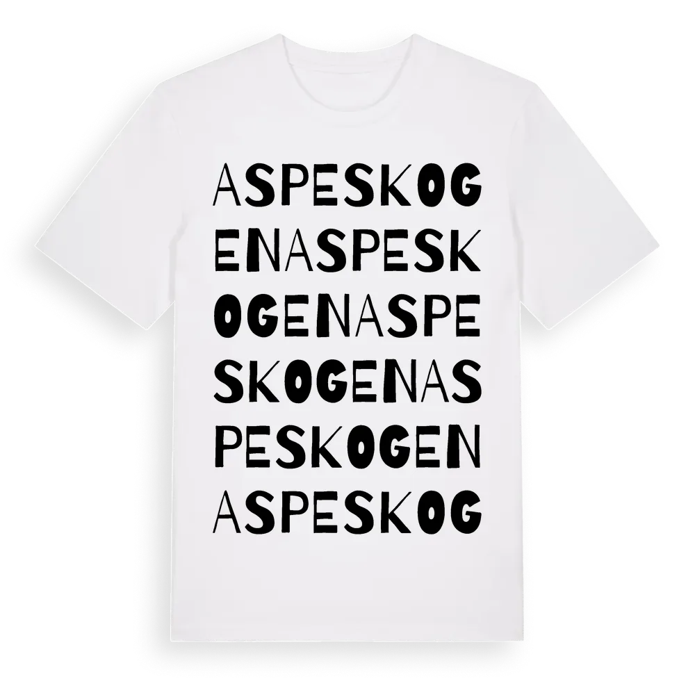 Aspeskogen ordlek t-shirt är inspirerad av Aspeskogen i Västra Götalands län, Sverige. Tröjan är designad för dig som har en speciell koppling till platsen – oavsett om du bor här, har rötterna här eller bara älskar Aspeskogen.