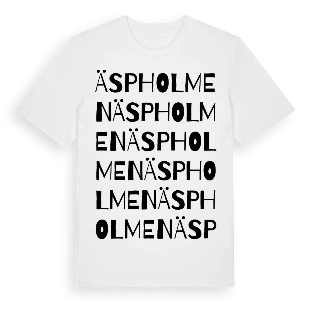 Äspholmen ordlek t-shirt är inspirerad av Äspholmen i Västra Götalands län, Sverige. Tröjan är designad för dig som har en speciell koppling till platsen – oavsett om du bor här, har rötterna här eller bara älskar Äspholmen.