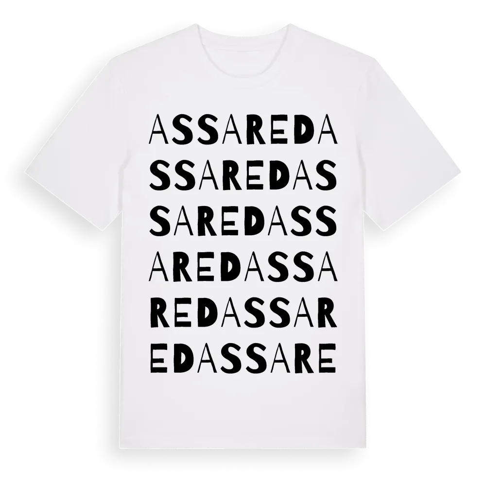 En ordlek byggd på Assareds namn. Subtilt och klurig – ett motiv som bara de som verkligen känner platsen fullt ut förstår. Premium bomull, unisex – från Assared i Västra Götalands län.