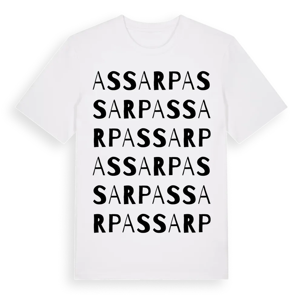 En ordlek byggd på Assarps namn. Subtilt och klurig – ett motiv som bara de som verkligen känner platsen fullt ut förstår. Premium bomull, unisex – från Assarp i Västra Götalands län.