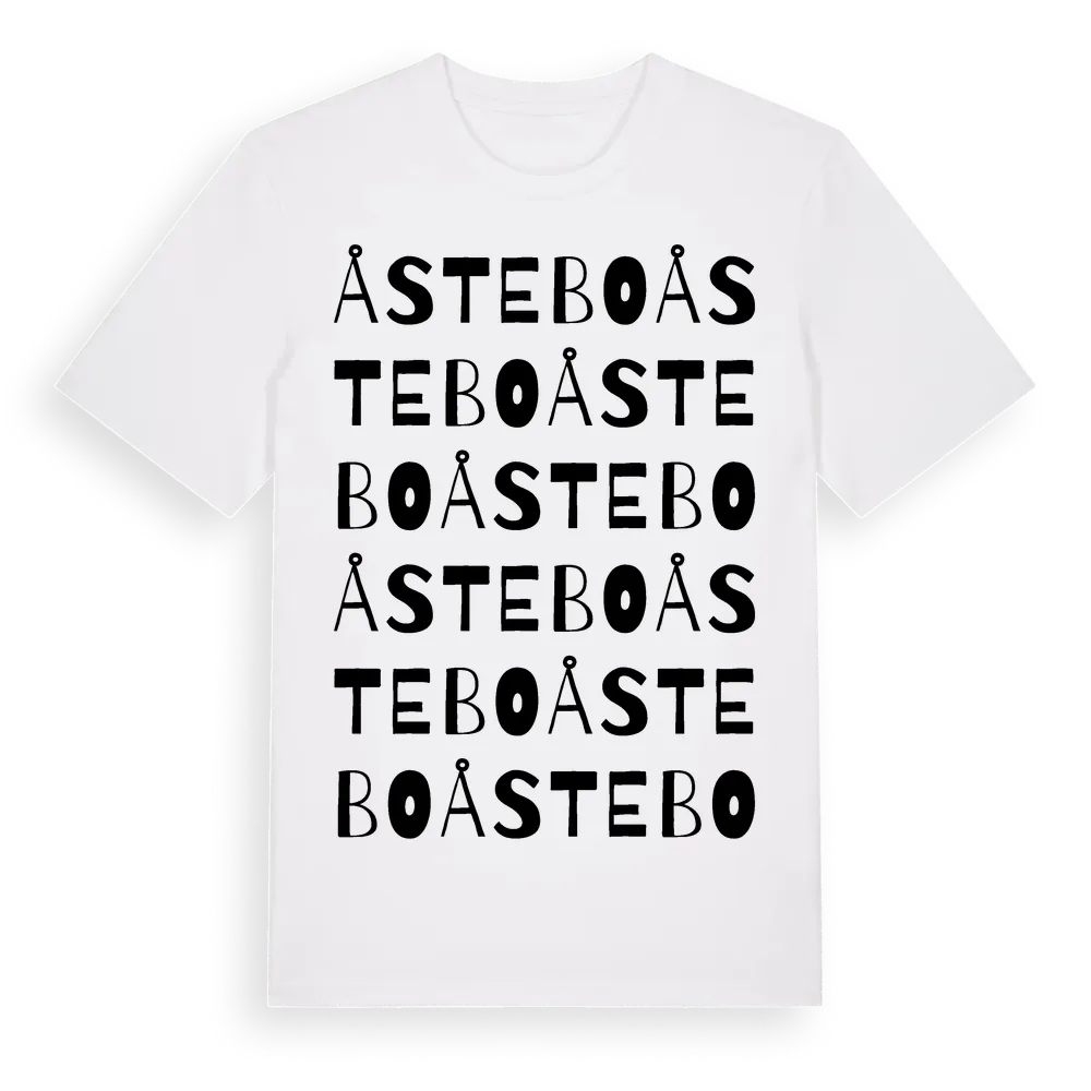 Åstebo ordlek t-shirt är inspirerad av byn Åstebo i Västra Götalands län, Sverige. Tröjan är designad för dig som har en speciell koppling till platsen – oavsett om du bor här, har rötterna här eller bara älskar Åstebo.