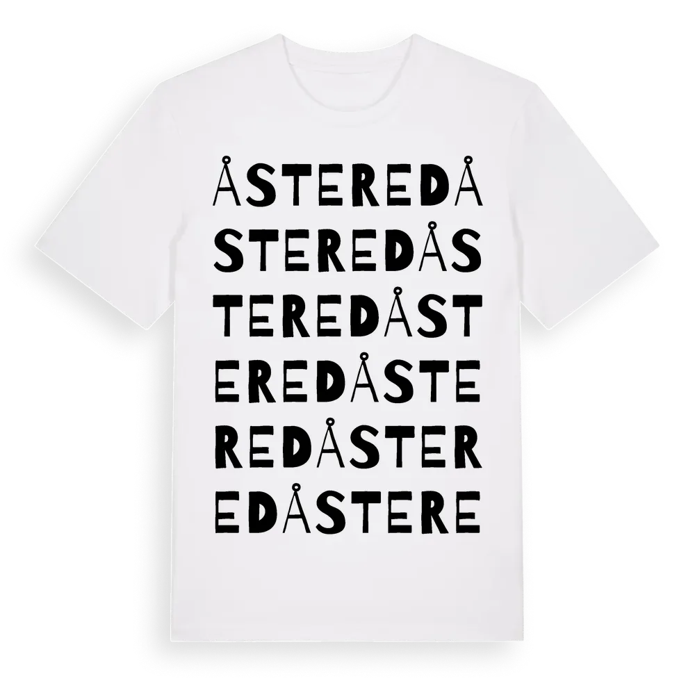 Åstered ordlek t-shirt är inspirerad av Åstered i Västra Götalands län, Sverige. Tröjan är designad för dig som har en speciell koppling till platsen – oavsett om du bor här, har rötterna här eller bara älskar Åstered.