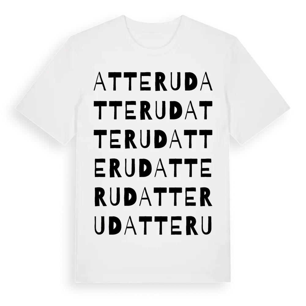 Atterud ordlek t-shirt är inspirerad av Atterud i Västra Götalands län, Sverige. Tröjan är designad för dig som har en speciell koppling till platsen – oavsett om du bor här, har rötterna här eller bara älskar Atterud.