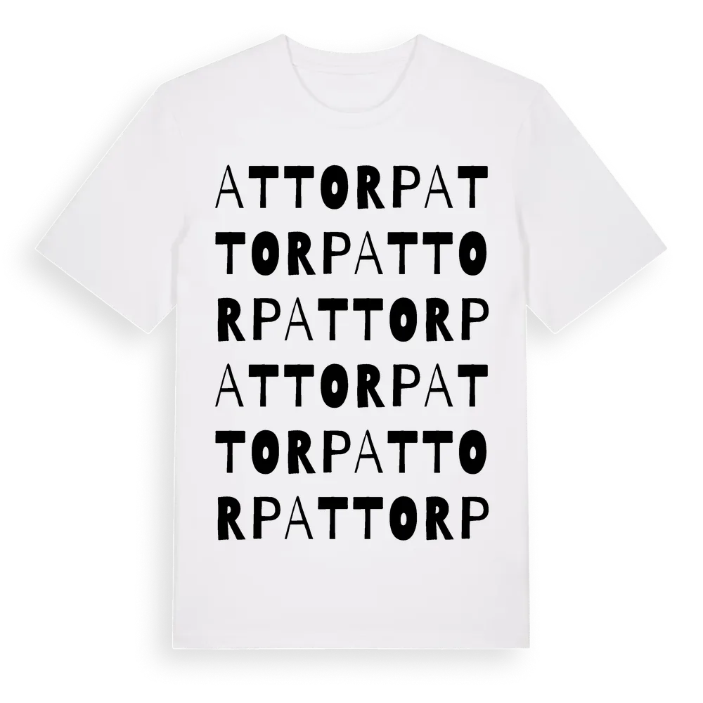 Attorp ordlek t-shirt är inspirerad av Attorp i Västra Götalands län, Sverige. Tröjan är designad för dig som har en speciell koppling till platsen – oavsett om du bor här, har rötterna här eller bara älskar Attorp.
