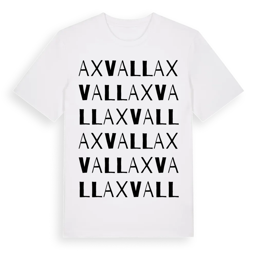 Axvall ordlek t-shirt är inspirerad av byn Axvall i Västra Götalands län, Sverige. Tröjan är designad för dig som har en speciell koppling till platsen – oavsett om du bor här, har rötterna här eller bara älskar Axvall.