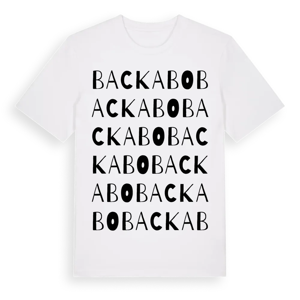 En ordlek byggd på Backabos namn. Subtilt och klurig – ett motiv som bara de som verkligen känner platsen fullt ut förstår. Premium bomull, unisex – från byn Backabo i Västra Götalands län.