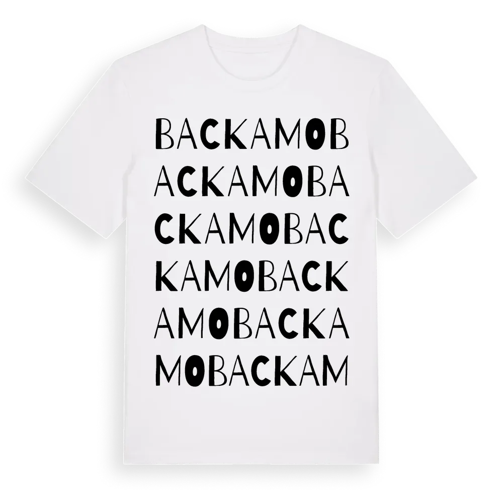 En ordlek byggd på Backamos namn. Subtilt och klurig – ett motiv som bara de som verkligen känner platsen fullt ut förstår. Premium bomull, unisex – från byn Backamo i Västra Götalands län.