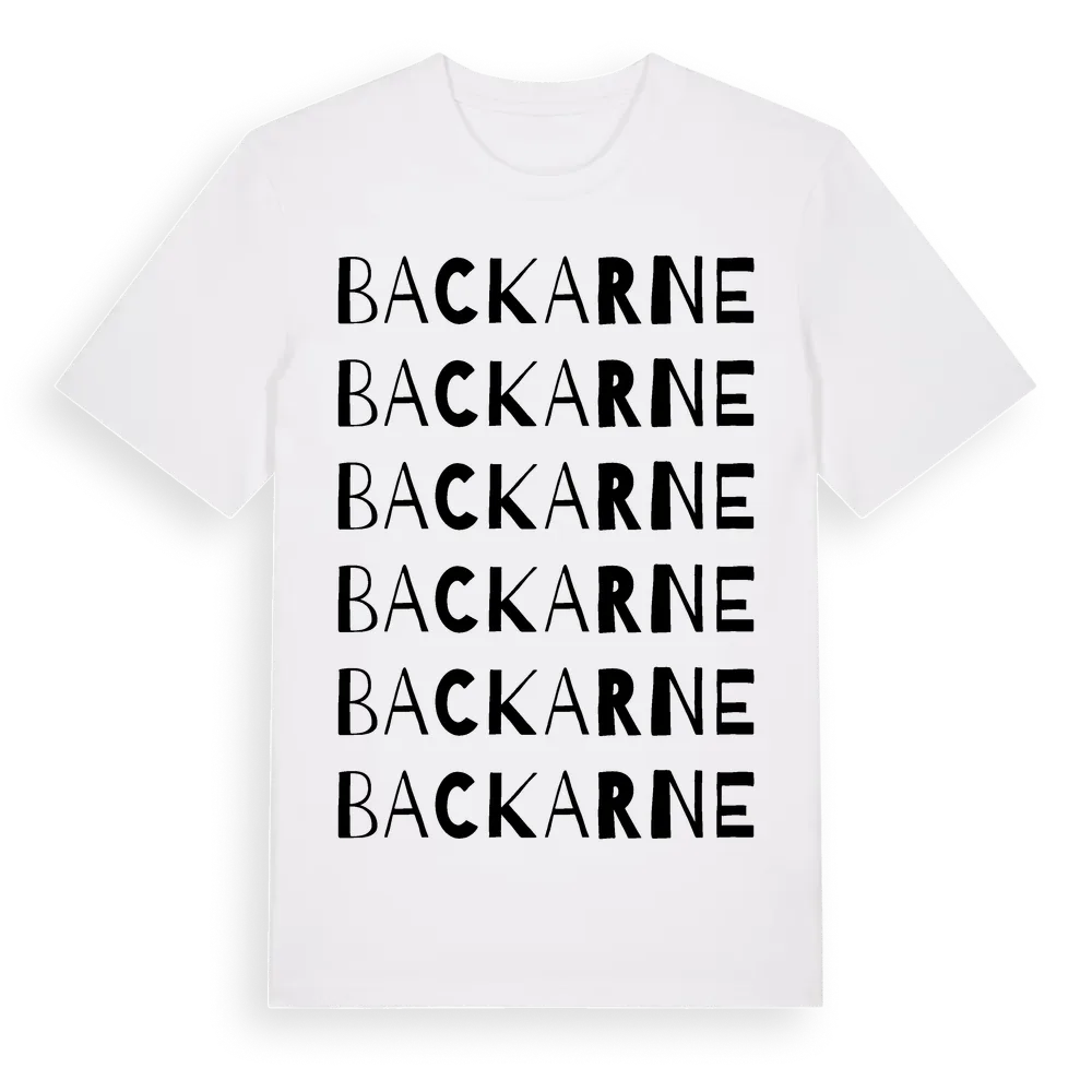 En ordlek byggd på Backarnes namn. Subtilt och klurig – ett motiv som bara de som verkligen känner platsen fullt ut förstår. Premium bomull, unisex – från Backarne i Västra Götalands län.