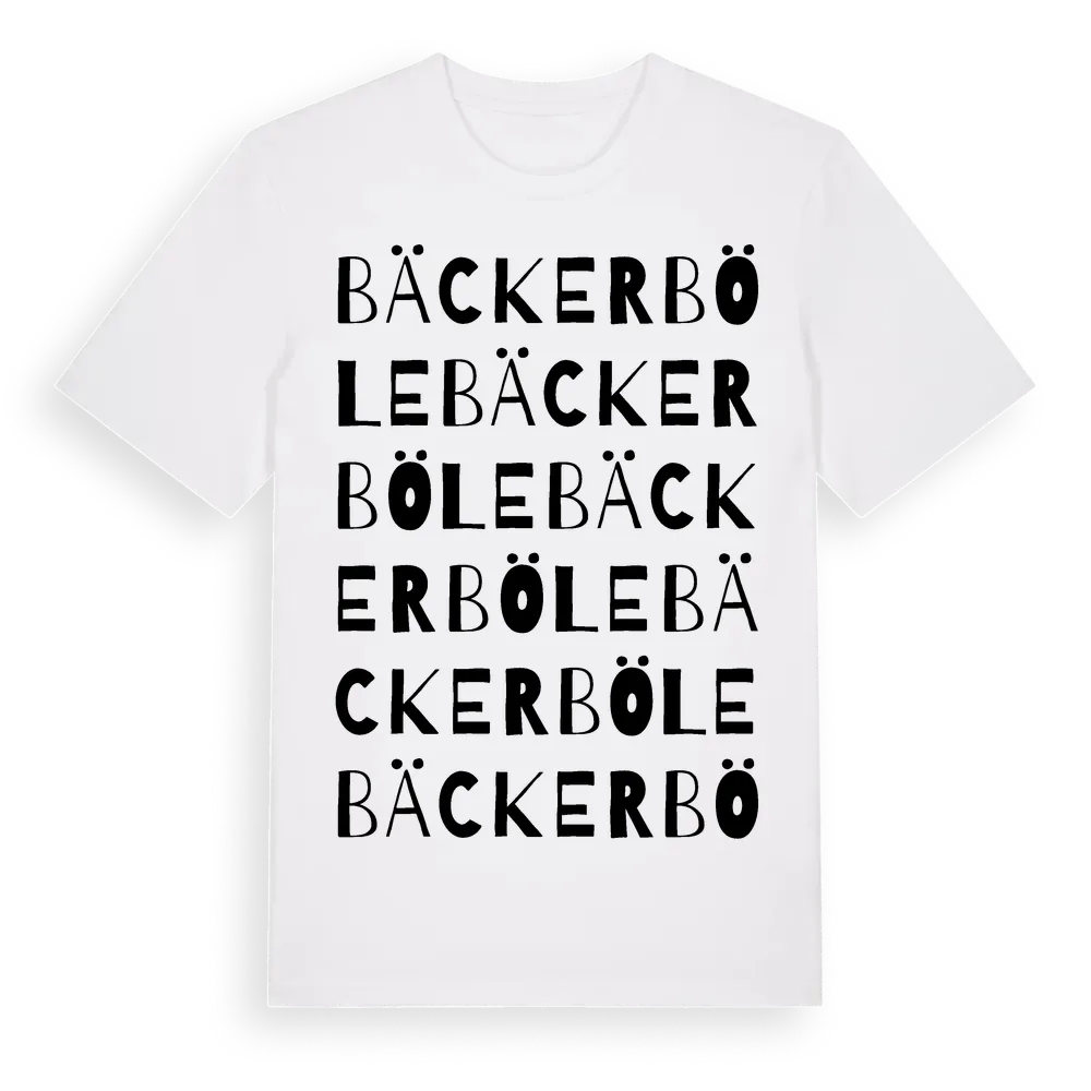 Bäckerböle ordlek t-shirt är inspirerad av Bäckerböle i Västra Götalands län, Sverige. Tröjan är designad för dig som har en speciell koppling till platsen – oavsett om du bor här, har rötterna här eller bara älskar Bäckerböle.