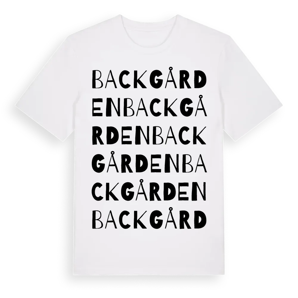 Backgården ordlek t-shirt är inspirerad av Backgården i Västra Götalands län, Sverige. Tröjan är designad för dig som har en speciell koppling till platsen – oavsett om du bor här, har rötterna här eller bara älskar Backgården.