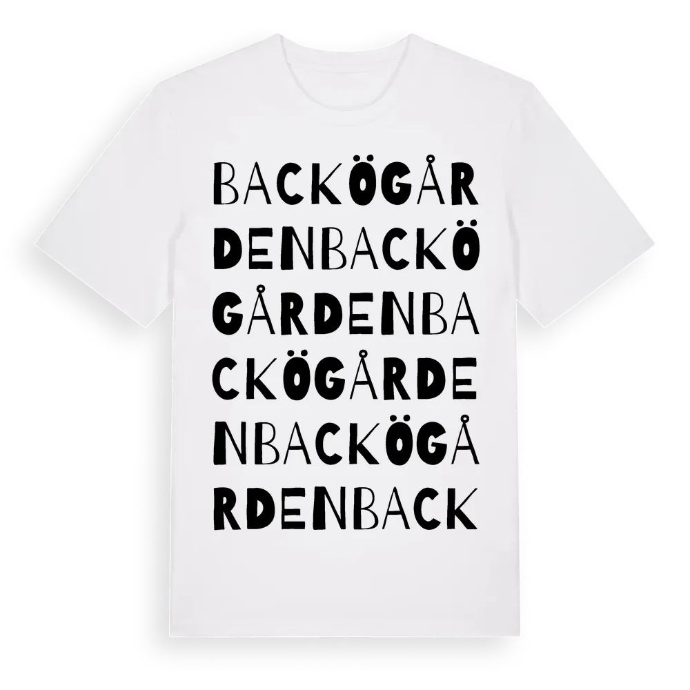 Backögården ordlek t-shirt är inspirerad av byn Backögården i Västra Götalands län, Sverige. Tröjan är designad för dig som har en speciell koppling till platsen – oavsett om du bor här, har rötterna här eller bara älskar Backögården.