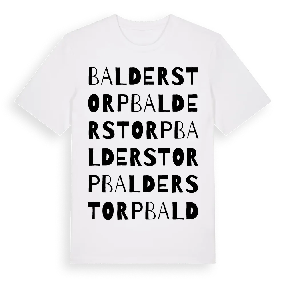 Balderstorp ordlek t-shirt är inspirerad av Balderstorp i Västra Götalands län, Sverige. Tröjan är designad för dig som har en speciell koppling till platsen – oavsett om du bor här, har rötterna här eller bara älskar Balderstorp.