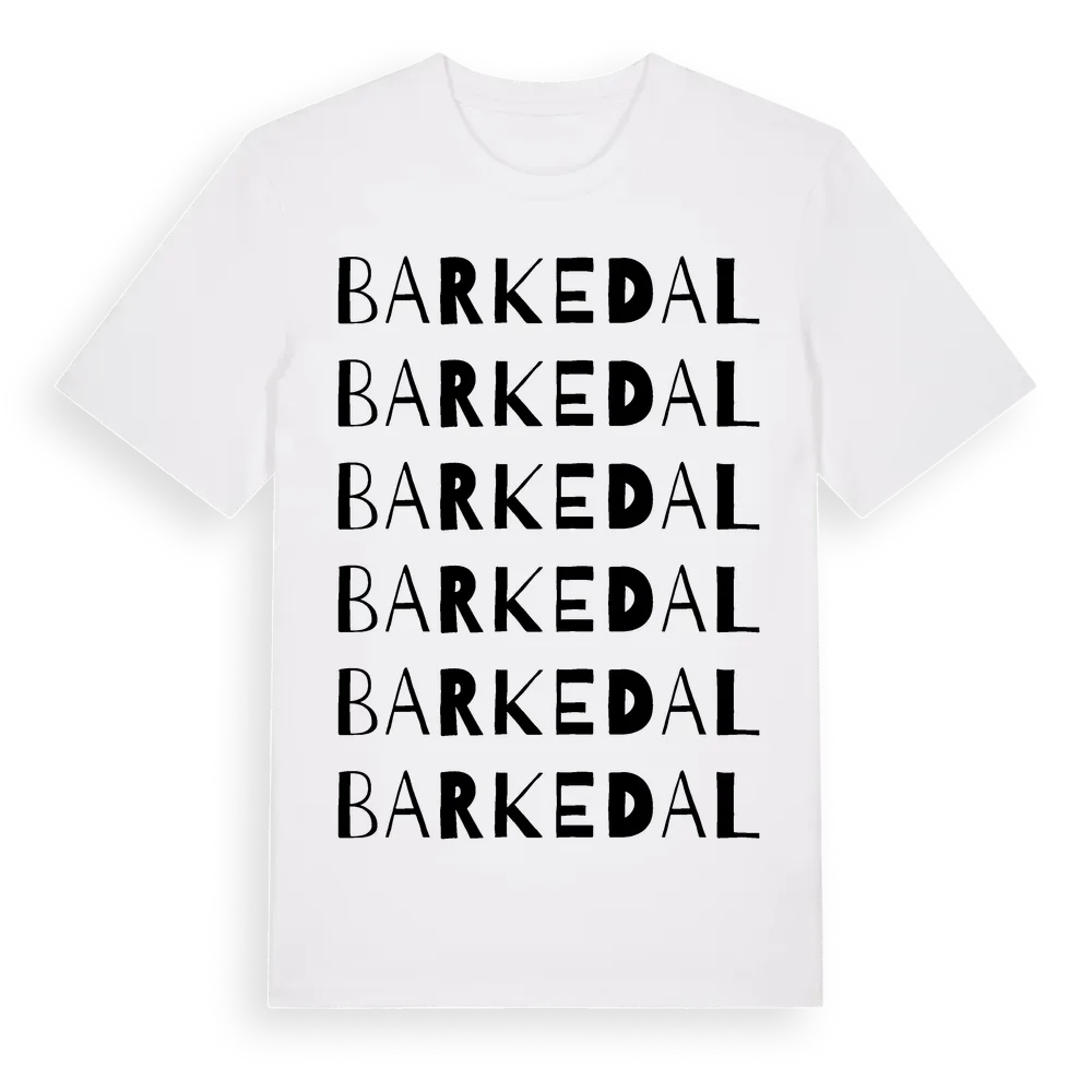 Barkedal ordlek t-shirt är inspirerad av byn Barkedal i Västra Götalands län, Sverige. Tröjan är designad för dig som har en speciell koppling till platsen – oavsett om du bor här, har rötterna här eller bara älskar Barkedal.