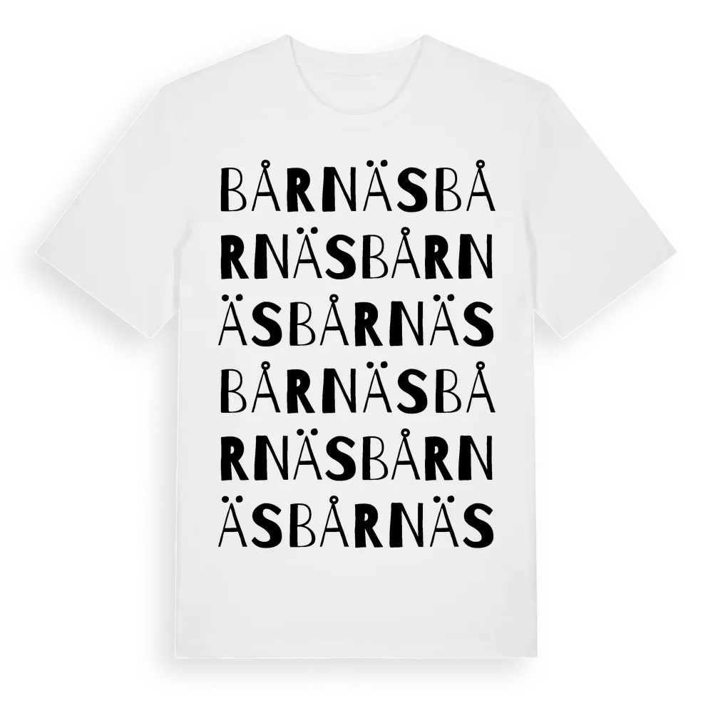 Bårnäs ordlek t-shirt är inspirerad av Bårnäs i Västra Götalands län, Sverige. Tröjan är designad för dig som har en speciell koppling till platsen – oavsett om du bor här, har rötterna här eller bara älskar Bårnäs.