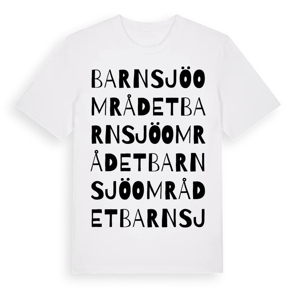 Barnsjöområdet ordlek t-shirt är inspirerad av byn Barnsjöområdet i Västra Götalands län, Sverige. Tröjan är designad för dig som har en speciell koppling till platsen – oavsett om du bor här, har rötterna här eller bara älskar Barnsjöområdet.