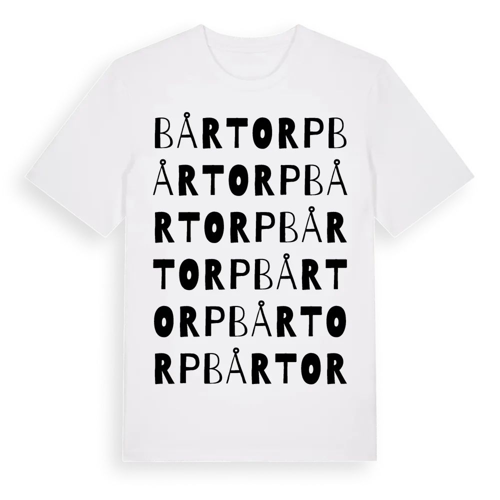 Bårtorp ordlek t-shirt är inspirerad av Bårtorp i Västra Götalands län, Sverige. Tröjan är designad för dig som har en speciell koppling till platsen – oavsett om du bor här, har rötterna här eller bara älskar Bårtorp.