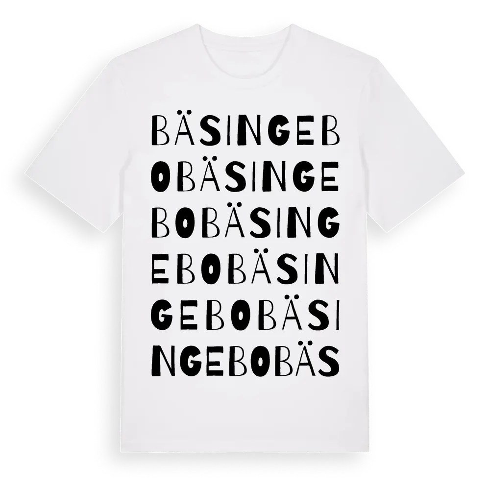 Bäsingebo ordlek t-shirt är inspirerad av byn Bäsingebo i Västra Götalands län, Sverige. Tröjan är designad för dig som har en speciell koppling till platsen – oavsett om du bor här, har rötterna här eller bara älskar Bäsingebo.