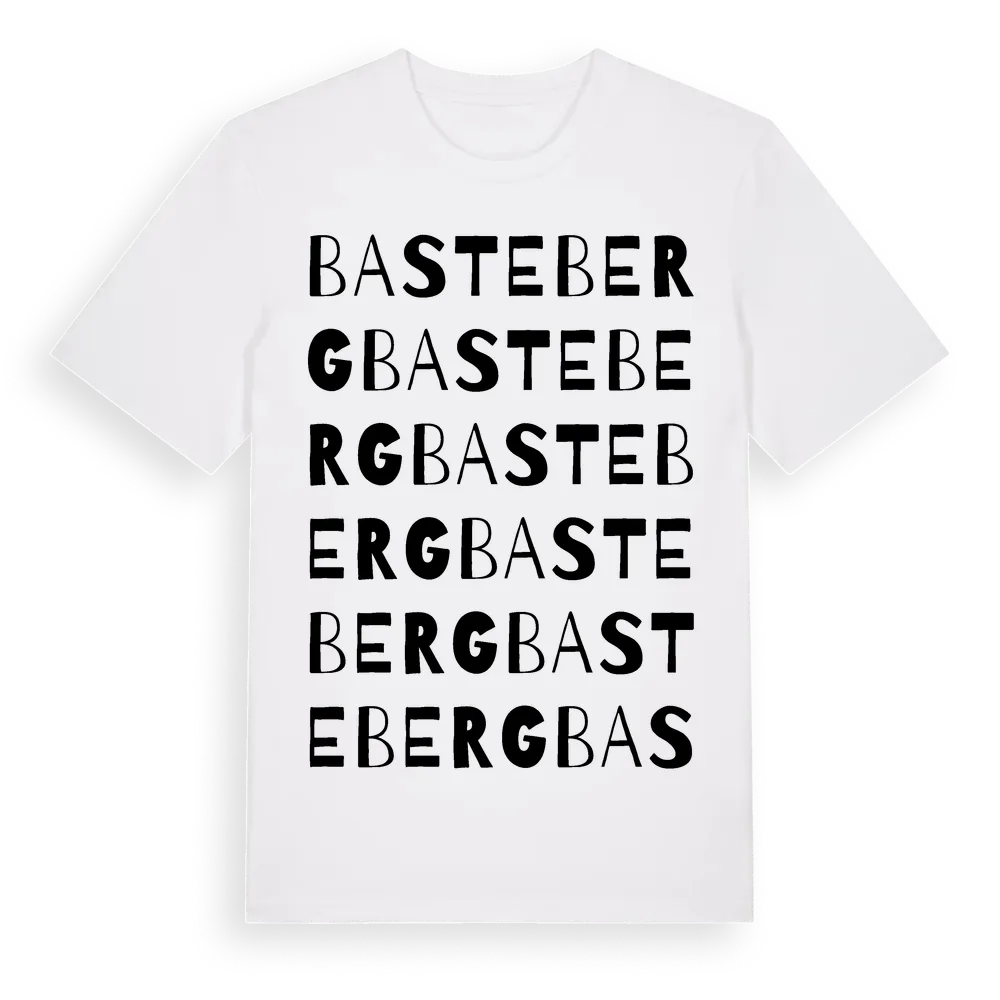 Basteberg ordlek t-shirt är inspirerad av Basteberg i Västra Götalands län, Sverige. Tröjan är designad för dig som har en speciell koppling till platsen – oavsett om du bor här, har rötterna här eller bara älskar Basteberg.