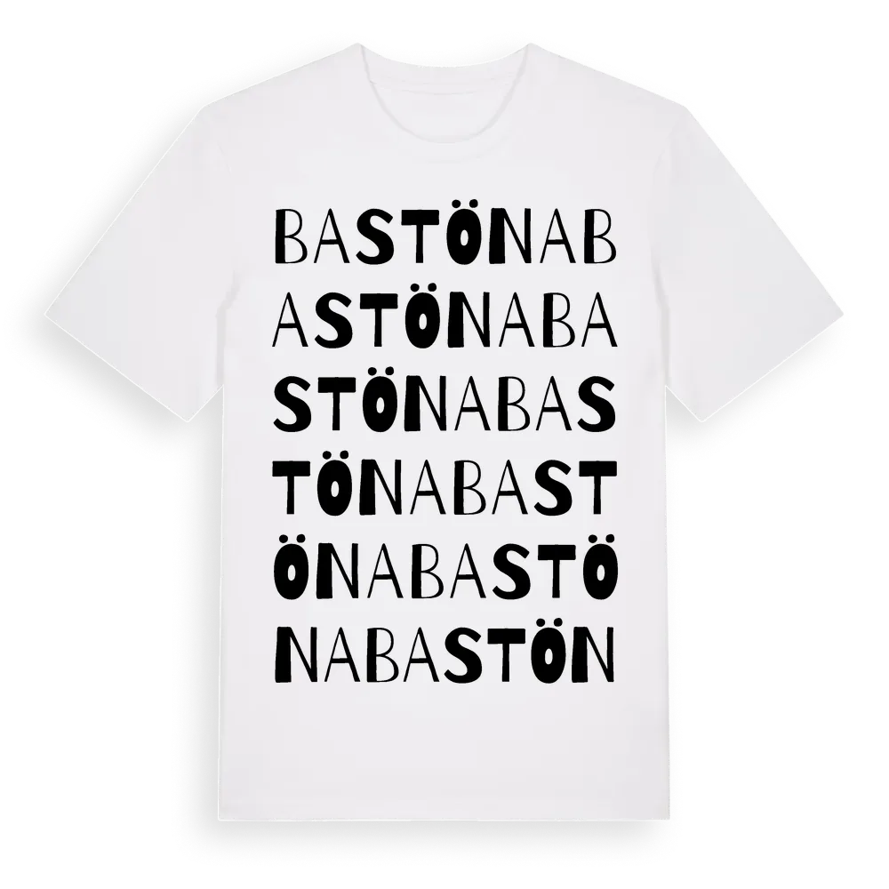 Bastöna ordlek t-shirt är inspirerad av Bastöna i Västra Götalands län, Sverige. Tröjan är designad för dig som har en speciell koppling till platsen – oavsett om du bor här, har rötterna här eller bara älskar Bastöna.