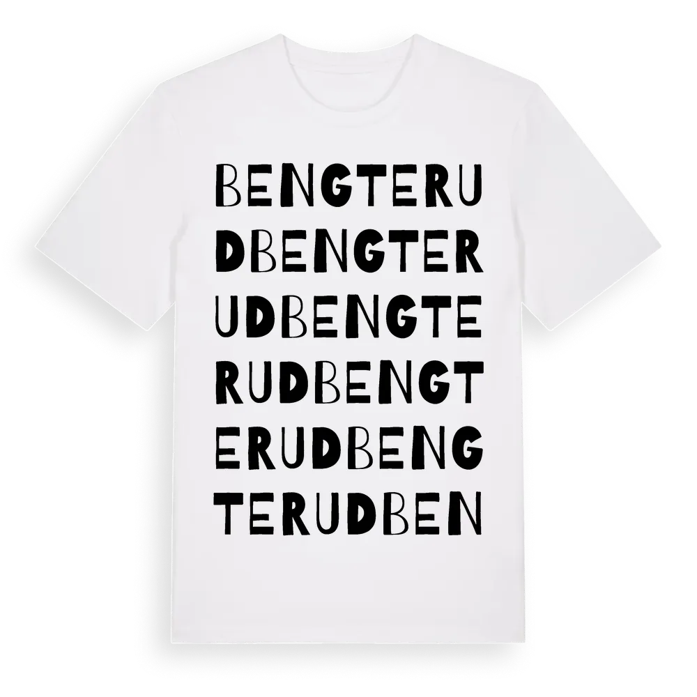 Bengterud ordlek t-shirt är inspirerad av Bengterud i Västra Götalands län, Sverige. Tröjan är designad för dig som har en speciell koppling till platsen – oavsett om du bor här, har rötterna här eller bara älskar Bengterud.