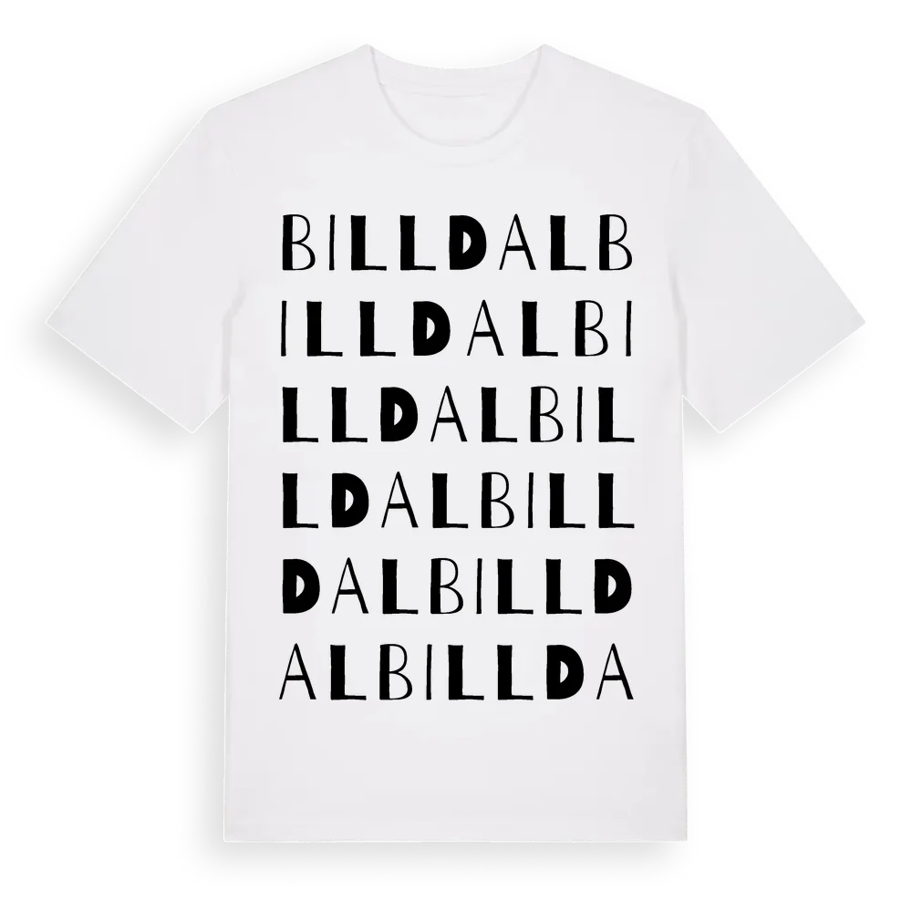 En ordlek byggd på Billdals namn. Subtilt och klurig – ett motiv som bara de som verkligen känner platsen fullt ut förstår. Premium bomull, unisex – från Billdal i Västra Götalands län.