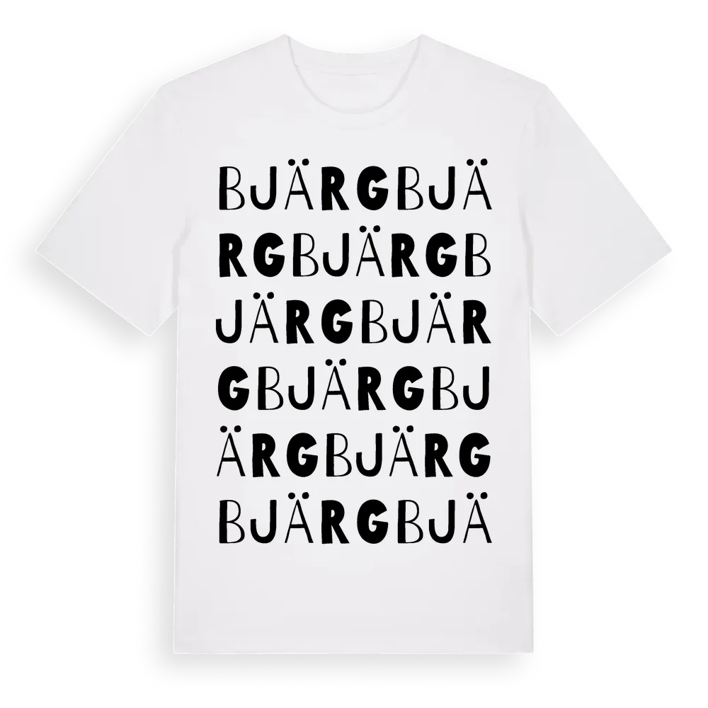 Bjärg ordlek t-shirt är inspirerad av byn Bjärg i Västra Götalands län, Sverige. Tröjan är designad för dig som har en speciell koppling till platsen – oavsett om du bor här, har rötterna här eller bara älskar Bjärg.