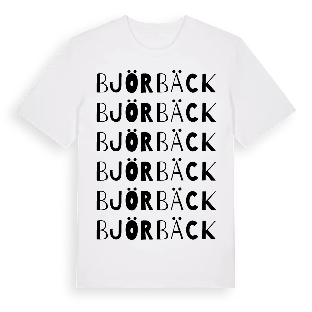 Björbäck ordlek t-shirt är inspirerad av byn Björbäck i Västra Götalands län, Sverige. Tröjan är designad för dig som har en speciell koppling till platsen – oavsett om du bor här, har rötterna här eller bara älskar Björbäck.
