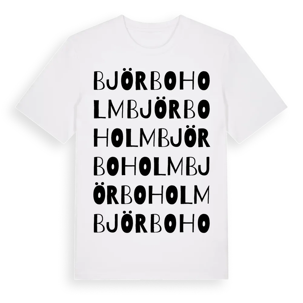 Björboholm ordlek t-shirt är inspirerad av byn Björboholm i Västra Götalands län, Sverige. Tröjan är designad för dig som har en speciell koppling till platsen – oavsett om du bor här, har rötterna här eller bara älskar Björboholm.