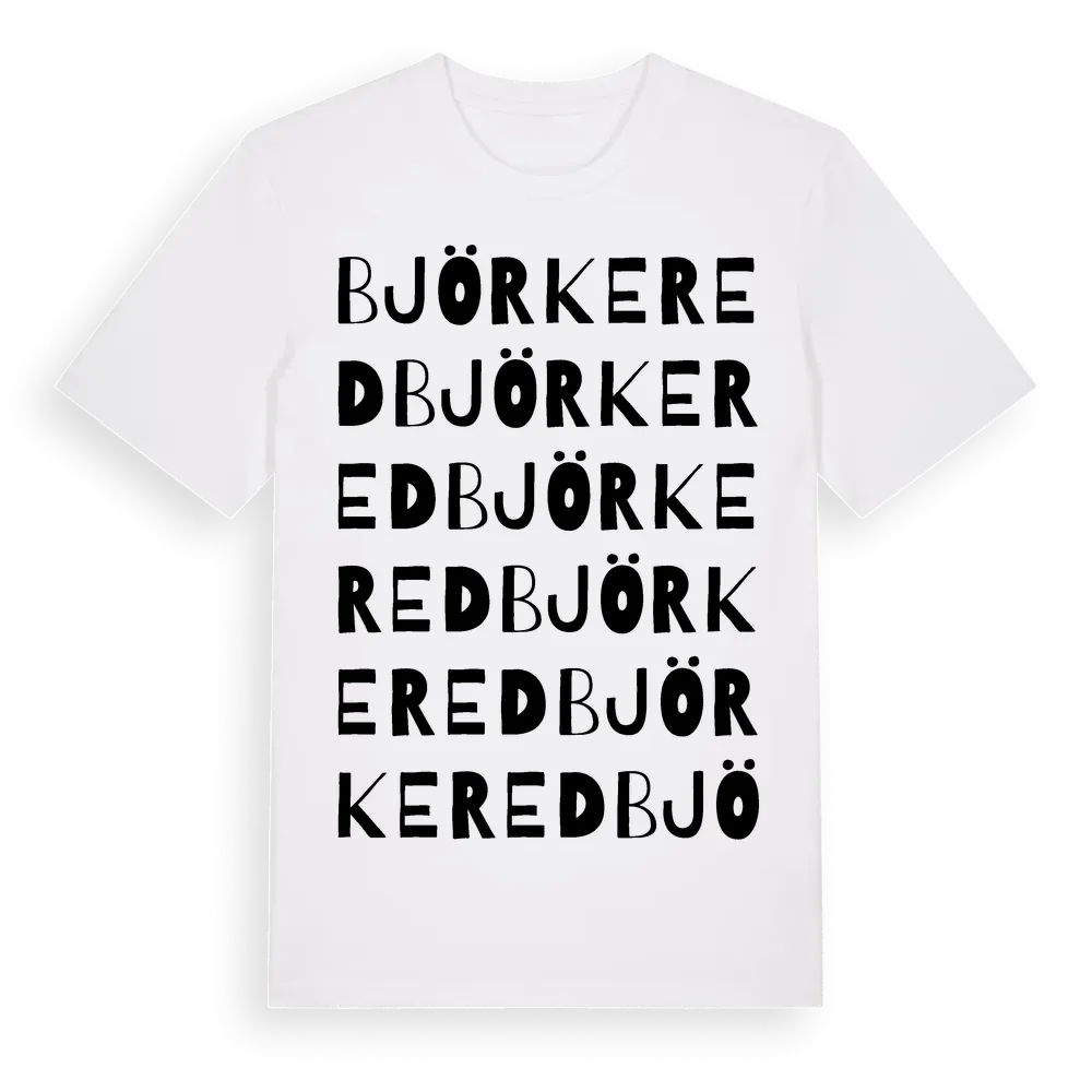Björkered ordlek t-shirt är inspirerad av byn Björkered i Västra Götalands län, Sverige. Tröjan är designad för dig som har en speciell koppling till platsen – oavsett om du bor här, har rötterna här eller bara älskar Björkered.
