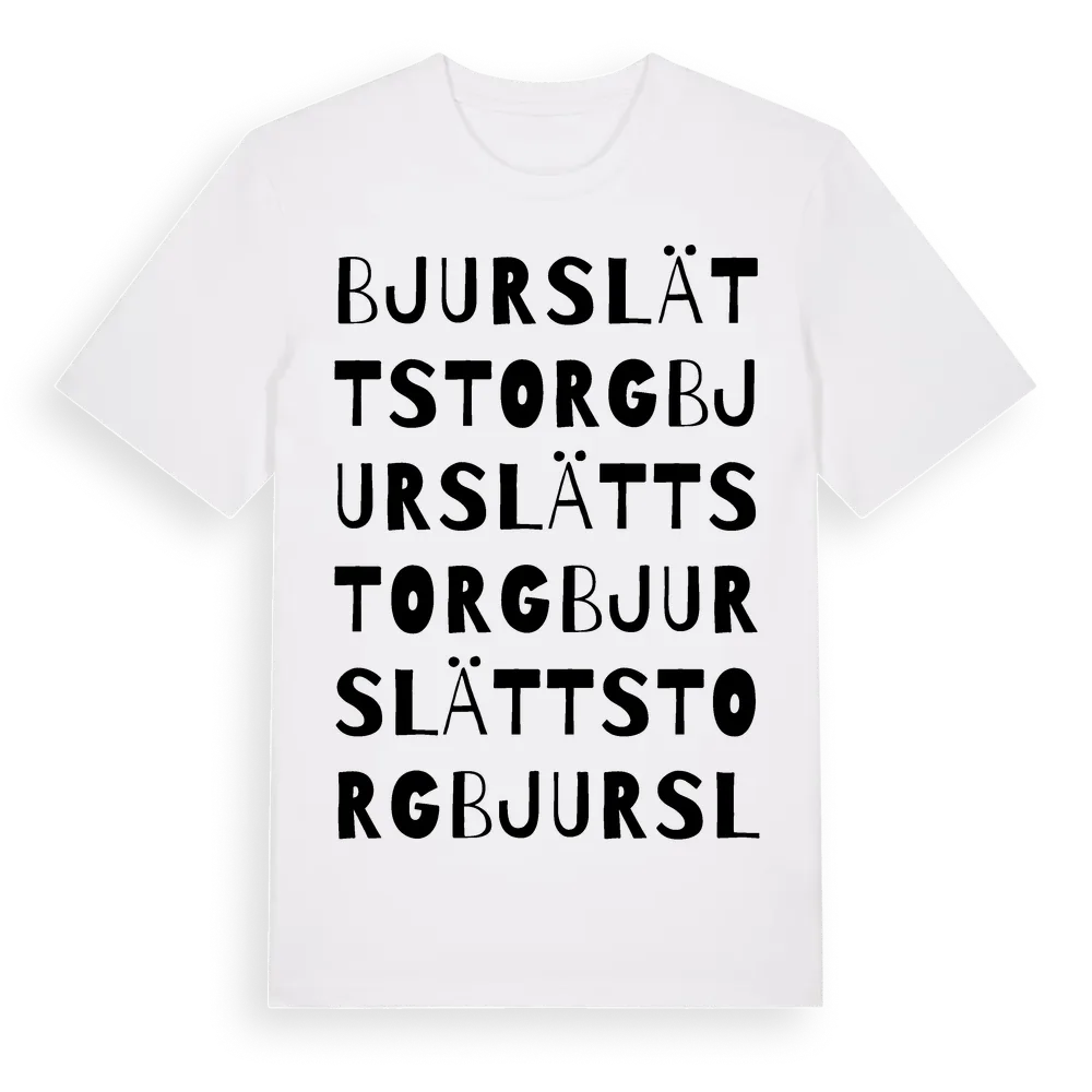 Bjurslätts Torg ordlek t-shirt är inspirerad av stadsdelen Bjurslätts Torg i Västra Götalands län, Sverige. Tröjan är designad för dig som har en speciell koppling till platsen – oavsett om du bor här, har rötterna här eller bara älskar Bjurslätts Torg.