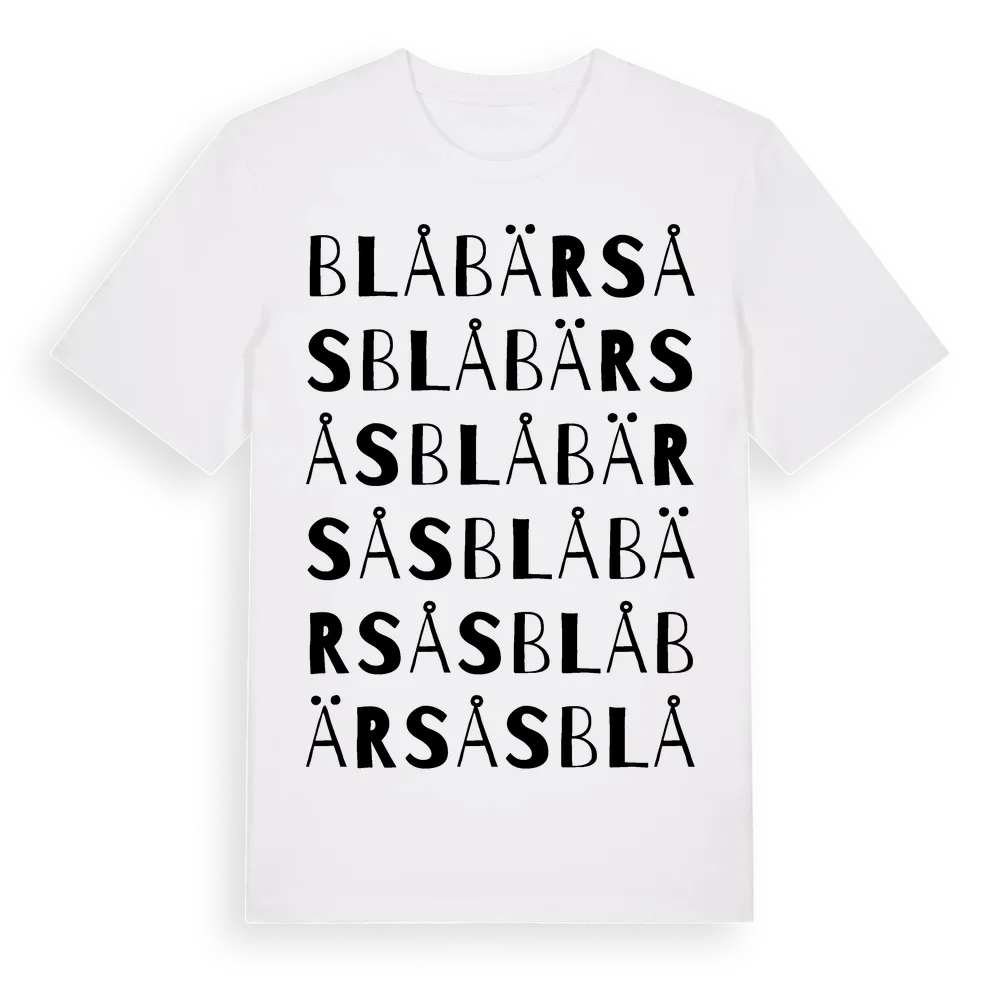 Blåbärsås ordlek t-shirt är inspirerad av byn Blåbärsås i Västra Götalands län, Sverige. Tröjan är designad för dig som har en speciell koppling till platsen – oavsett om du bor här, har rötterna här eller bara älskar Blåbärsås.