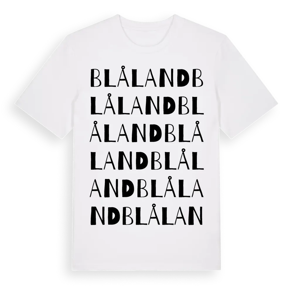 Blåland ordlek t-shirt är inspirerad av Blåland i Västra Götalands län, Sverige. Tröjan är designad för dig som har en speciell koppling till platsen – oavsett om du bor här, har rötterna här eller bara älskar Blåland.