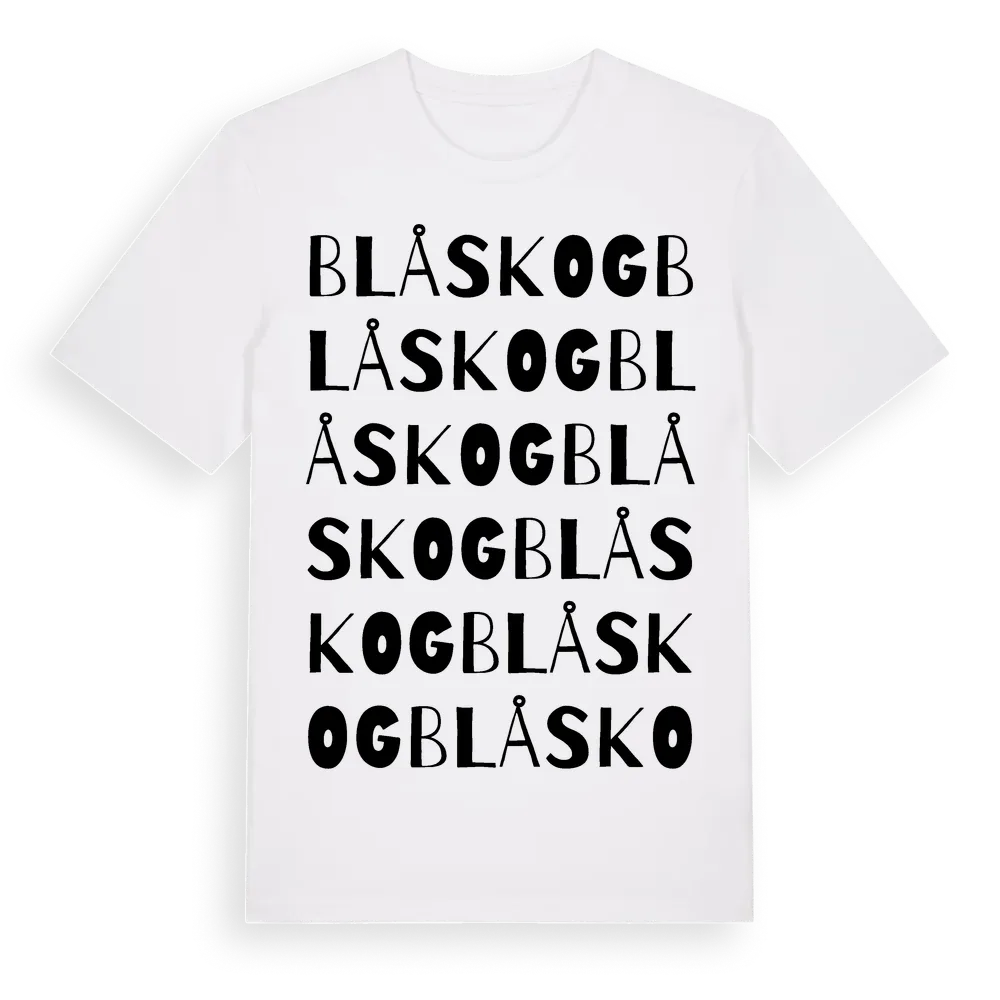 Blåskog ordlek t-shirt är inspirerad av byn Blåskog i Västra Götalands län, Sverige. Tröjan är designad för dig som har en speciell koppling till platsen – oavsett om du bor här, har rötterna här eller bara älskar Blåskog.