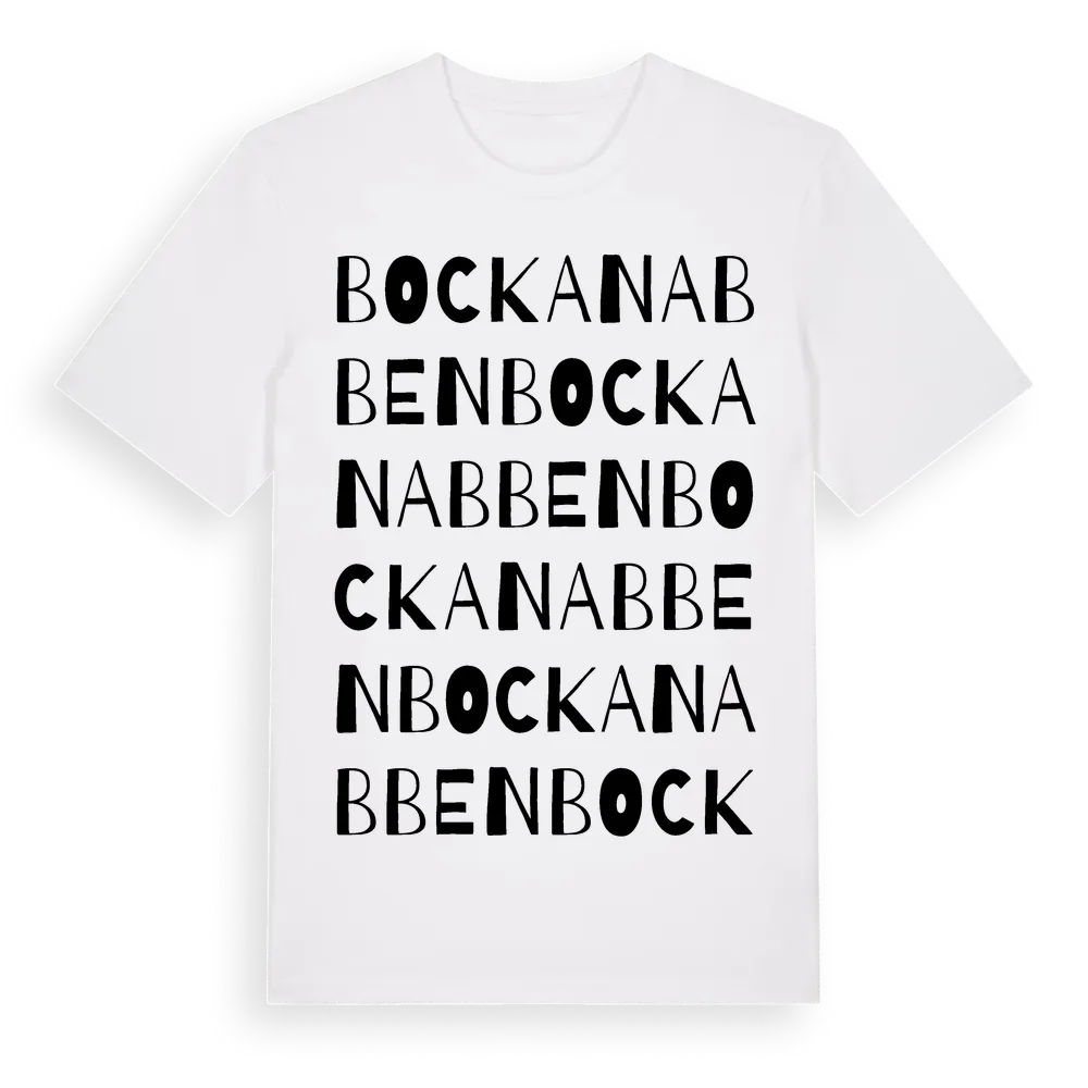 Bockanabben ordlek t-shirt är inspirerad av Bockanabben i Västra Götalands län, Sverige. Tröjan är designad för dig som har en speciell koppling till platsen – oavsett om du bor här, har rötterna här eller bara älskar Bockanabben.