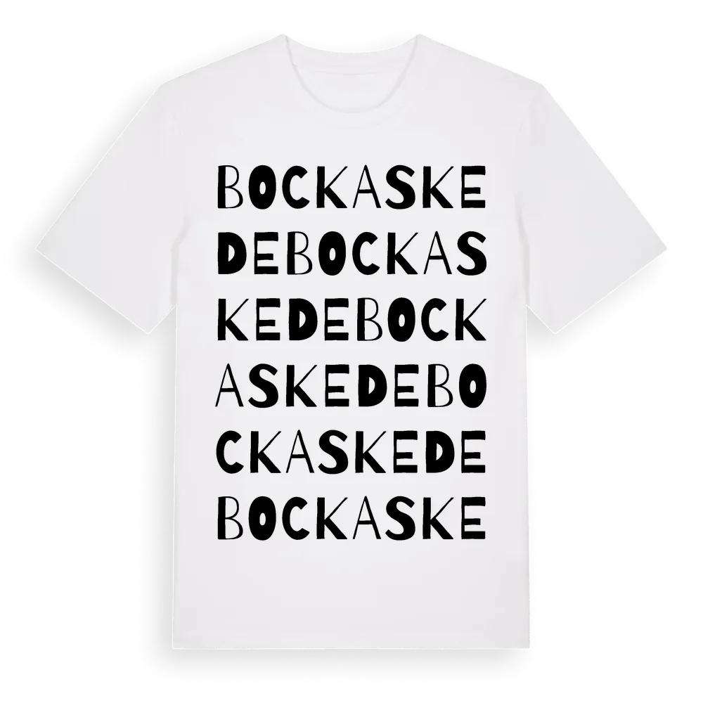 Bockaskede ordlek t-shirt är inspirerad av byn Bockaskede i Västra Götalands län, Sverige. Tröjan är designad för dig som har en speciell koppling till platsen – oavsett om du bor här, har rötterna här eller bara älskar Bockaskede.